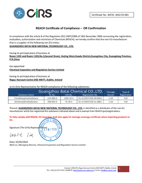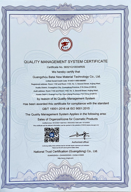 Cina Guangzhou Batai New Material Technology Co., Ltd. Certificazioni